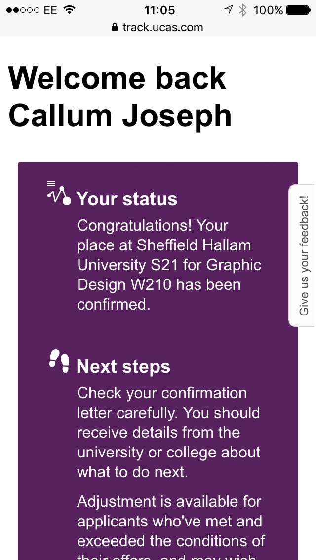 Its official got my Place at Sheffield Hallam University to study Graphic Design after I Achieved a Distinction in my Art and Design Foundation.